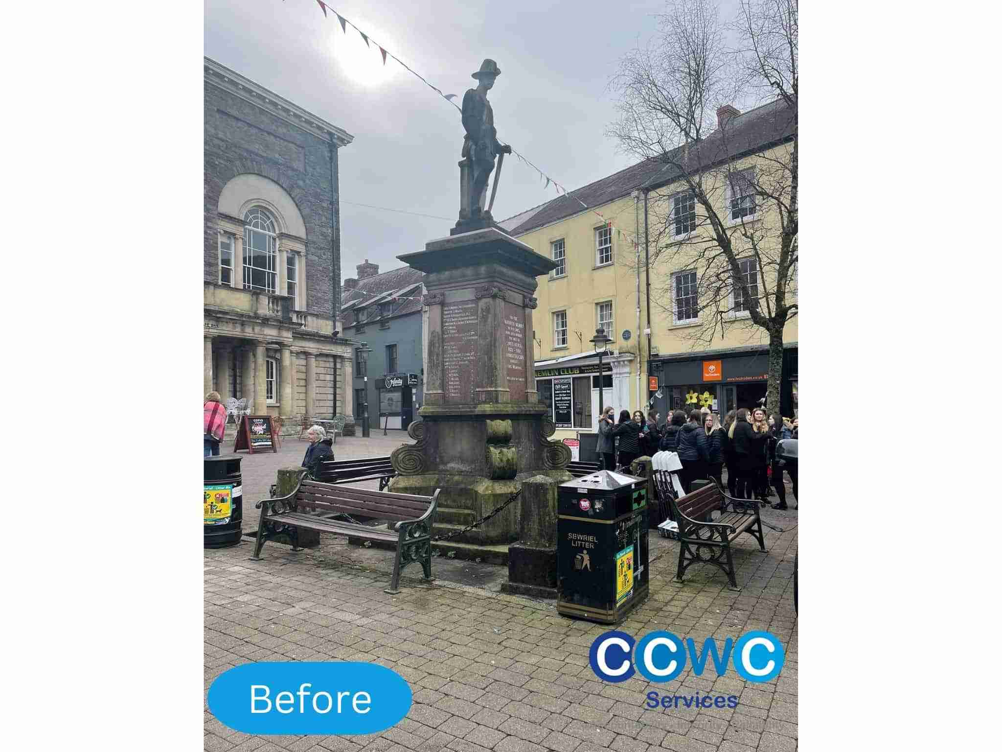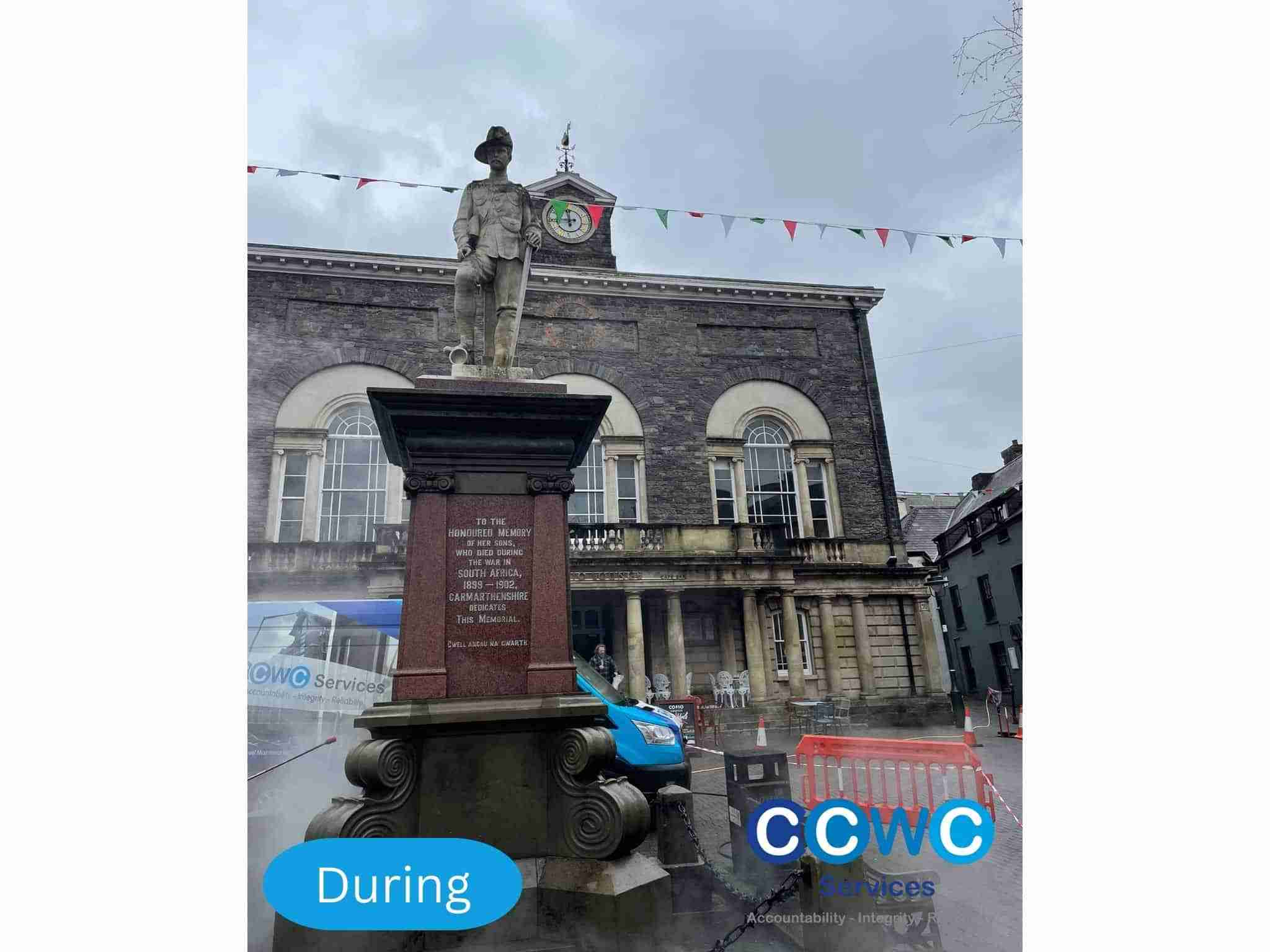 Carmarthenshire County Council faced a significant challenge in preserving their historical cenotaphs while complying with Grade-listed building regulations. The council required a meticulous cleaning solution that would not only restore the monuments’ original glory but also ensure the safety and convenience of pedestrians and traffic during the cleaning process. Our team at CCWS Services stepped in to provide an innovative and tailored solution that addressed these complex requirements.