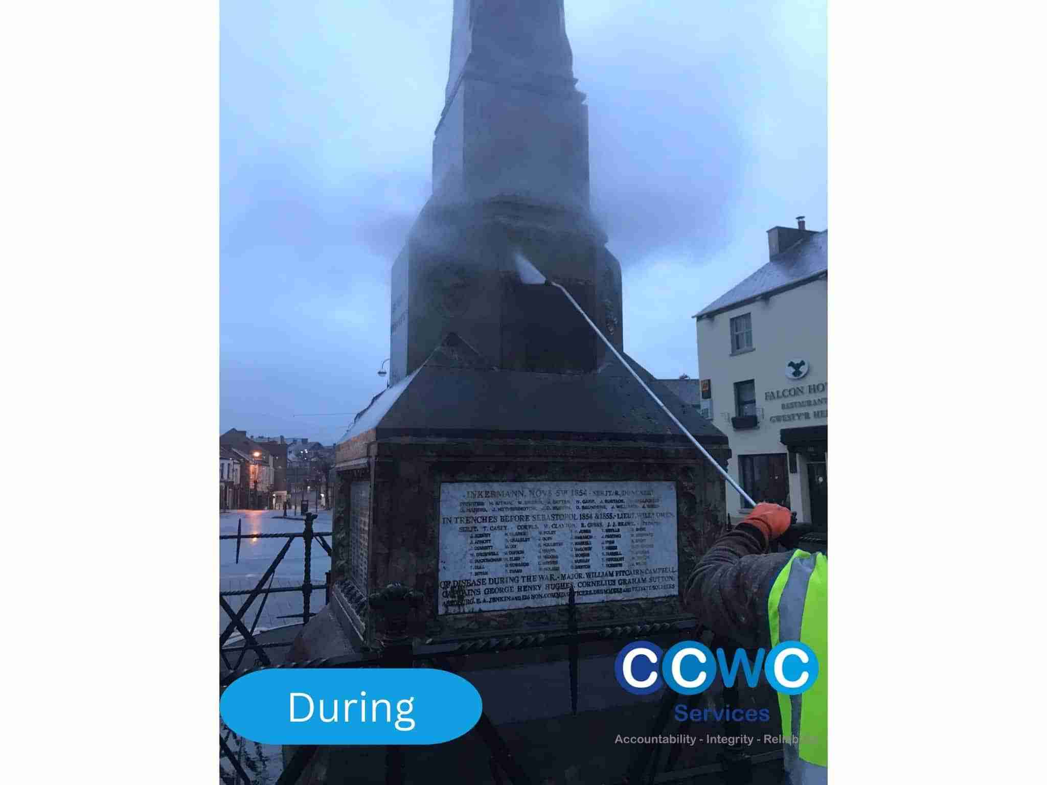 The cenotaphs, integral to Carmarthenshire’s heritage, were showing signs of wear and dirt accumulation, threatening their historical significance. The Grade-listed building regulations added an extra layer of complexity, requiring utmost care and precision during the cleaning process. Additionally, the cleaning operation needed to be executed without disrupting the local community and managing pedestrian and traffic flow around the monuments.